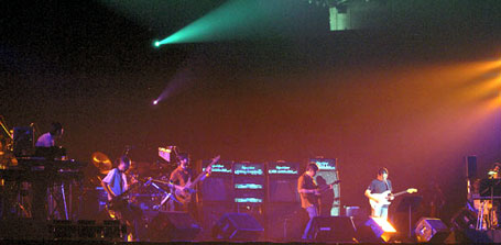 オープニングに演奏されたのは昨年発売された新録としては最新作となる「μ」の1曲目に収められていた「Circle of Life」だった。 1曲目が終わったところでオリジナル・メンバーだった森園、久米を含む旧メンバー4人が登場して、ここからは初期のお馴染みのレパートリーが演奏される。8人編成の大所帯となったためかPAのバランスが悪くなって少々聞きづらい部分があったのが残念だったが、和田、森園のツイン・ギターでの往年のプリズム・サウンドを楽しむことができた。 和田のギターサウンド中心の最近のプリズムだが、この日のステージではサックスや、森園の丸めのギターサウンド、新澤のモーグでの太い音でのシンセソロなどが彩りを添え、ヴァラエティに富んだサウンドになっていたように思う。(橋 雅人) |