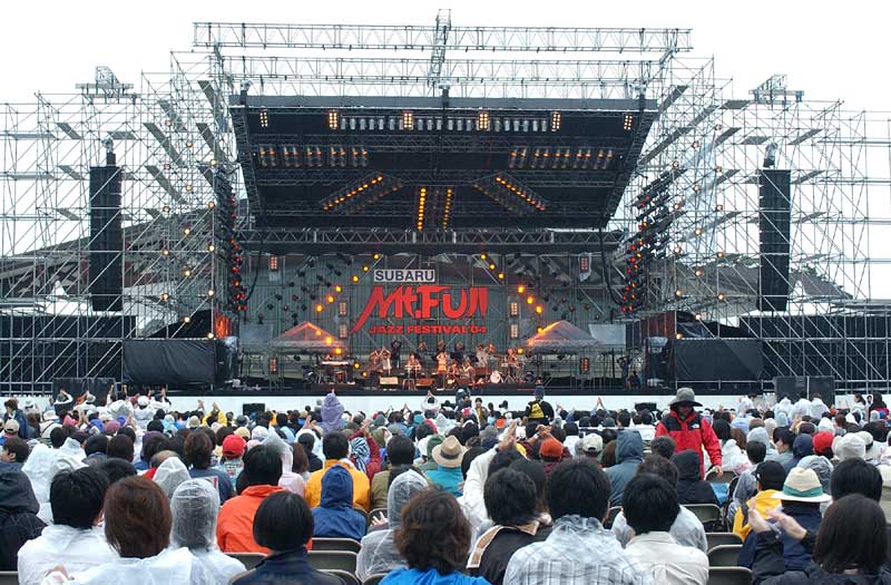 Mt.Fuji Jazz Festival 2004のオープニングが、日本が誇るサルサ・バンド”オルケスタ・デ・ラ・ルス”。 雨が降るのを忘れてしまうかのような、エネルギッシュなステージを見せてくれる。 ラテン・ブラスの響きが心地よく、激しいリズム、ボーカル、コーラスなど、この演奏には音楽のあるとあらゆるエッセンスが混ざっているなと感じる。 ラテン・アレンジの「島唄」はなかなか楽しかった。 |