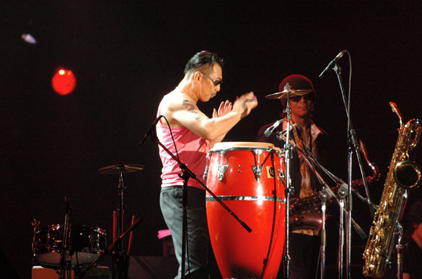 斉藤ノブもこんなに息が上がるほどパーカッションを叩くのもこのバンドならではだろう。