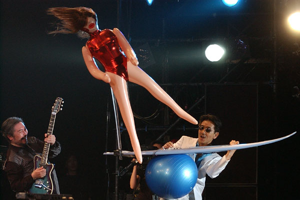 最後には高中が去年も登場したサーフボードギターに持ち替えカシオペアの「朝焼け」の高中の「ブルーラグーン」を強引に継ぎはぎしたアレンジの「朝焼けのブルーラグーン」が演奏された。 |