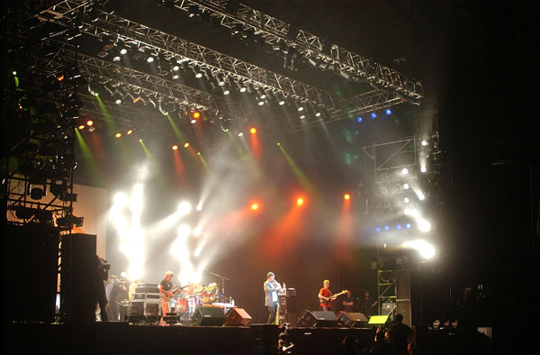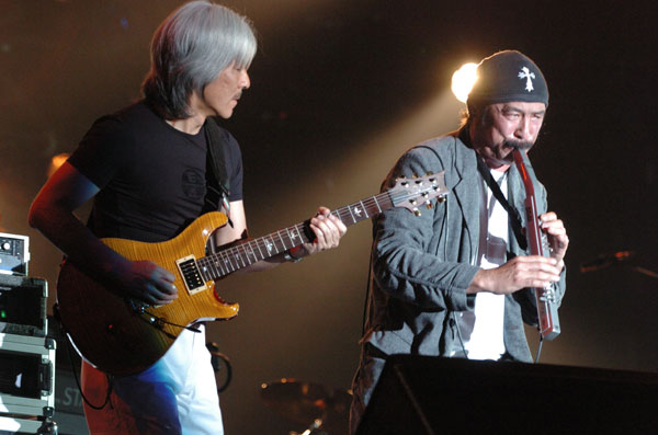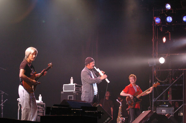 新生T-SQUAREの新譜「Passion Flower」はゆったりとしたPOPなアルバムだったので、そんなステージを何となく想像していたのだが、1曲目のプレステ「Gran Turismo4」のテーマ曲「Knight's Song」のハードな演奏であっさりとその予想を裏切られてしまった。 2曲目のちょっとスムース系のニューアルバムからの曲、「Let Your Love Flow」で一旦スローダウンするものの、それ以降最後まで勢いのあるサウンドで演奏し続ける疾走感あふれるステージだった。