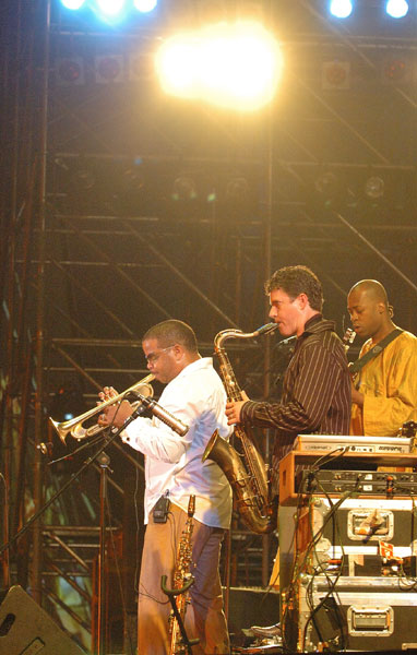 テレンス・ブランチャードは、4ビートのみならず、エレクトリックを交えたバンドで登場。 流石にトランペットの鳴りは素晴らしく、現在Jazzの実力派トランペッターの凄みを聴かせてくれました。 また、昨年初登場した謎のギタリストのリオーネル・エルケ(g)は、このテレンスとレコーディングもあり、今回もコリコリカリカリとギターを擦る謎の奏法を聞かせてくれました。 欲を言えば、もっとテレンスのはばりばりとトランペット・ソロを聞かせて欲しかった・・・と思うほど、テレンスのトランペットの素晴らしさを再発見しました。(TKO) |