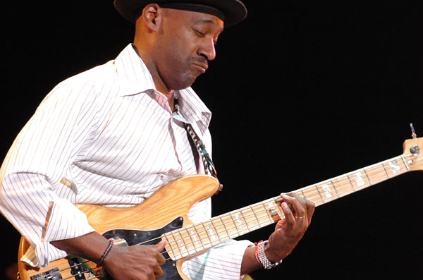 東京Jazzに出演するミュージシャンは予測の範囲内の人もいる一方、まさか彼らが出るなんてと驚かされる人も居ます。 今回のマーカス・ミラー出演には、驚きと同時に狂喜した人も多かったのではないでしょうか。 まさに満を持しての登場となったマーカス・ミラーですが、実は前の日のヘッドハンターズの一員として一足先に出演していたわけです。 そして翌日は自分のバンドを率いての演奏と、ある意味でハービー・ハンコックに次ぐ忙しさになったこの2日間だったのではないかと想像します。 準備に手間取り、ややスタートが遅れたのですが、待ち遠しかったファンから大きな拍手と声援が飛びます。 さすがにマーカス、1曲目から惜しみのないベースワークを楽しませてくれます。 それにしても今更ながら、なんと力強いベースワークだろうと感心します。スラップももちろんなのですが、フィンガーピッキングでのベース音もびんびんに客席に伝わってきます。 また、タッピングにしてもマーカスはいとも簡単にやってのけるので、本当に現在NO.1ベースマスターであることを実感します。 パッチェス・スチュワートのEVI(SAX向けがEWIに対し、トランペッター向け)もなかなかで、ソロではエフェクトをかませたユニークな演奏を聴かせてくれました。 それと今回参加してキース・アンダーソンはテナーSaxを吹き、今までマーカスのバンドはアルトSax奏者ばかりなのでテナーは如何に?と思いましたが、なかなかこれがサウンドになじんでいました。 また、ディーン・ブラウンの「待ってました」のギター・ソロも冴えてます。凄いのか、凄くないのか分からなくなってしまうほど(笑)、白熱した凄みを魅せてくれました。 演奏曲はもうマーカス・ミラー・バンドといえばのおなじみの曲ばかり。 ここのところ衛星放送やDVDでよく見るレパートリーなのですが、流石に生で聴くと一味も二味も違う感じですね。 また、新作シルバーレインからの曲もレパートリーとしてなじんでいて、フランケンシュタインやパワー・オブ・ソウルと、また新たにマーカス・サウンドに魅力が加わったと感じました。(TKO) |