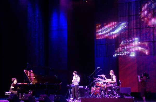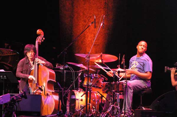 1曲目の新感覚のファンク曲「XYZ」から全開の演奏。 この曲は聴いているうちになぜかエマーソン・レイク&パーマーを連想してしまうような演奏だった。 レギュラー・トリオでのタイトなプレイは相変わらずだが、2年ぶりに生で見た上原の表現力は格段に幅がでてきたように感じた。 高速でパワフルなピアノはより磨きがかかっている上に、ゆったりとしたテンポのフレーズでも存在感は抜群だった。 この日の昼、夜を通じてのハイライトはこの上原ひろみのステージだったと言ってもよいだろう。 ベースのトニー・グレイのプレイもなかなかのものだった。(橋 雅人) |